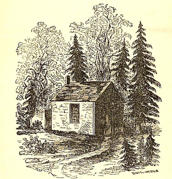 | Thoreau's cabin, from the book's first edition (Wikipedia) |